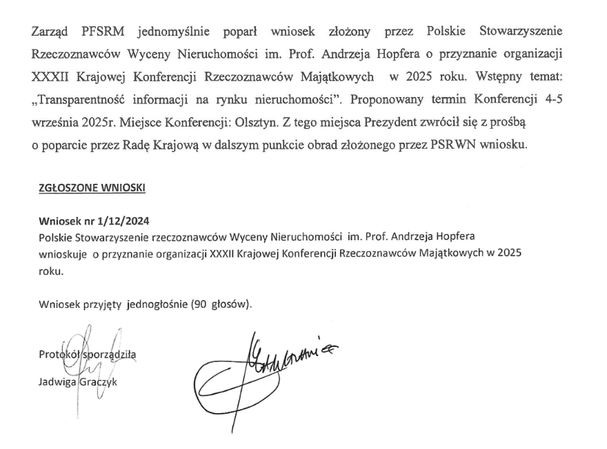 Z przyjemnością informujemy, że nasz wniosek do Rady Krajowej Polskiej Federacji Stowarzyszeń Rzeczoznawców Majątkowych o przyznanie organizacji XXXII Krajowej Konferencji Rzeczoznawców Majątkowych w 2025r. został jednomyślnie przegłosowany.